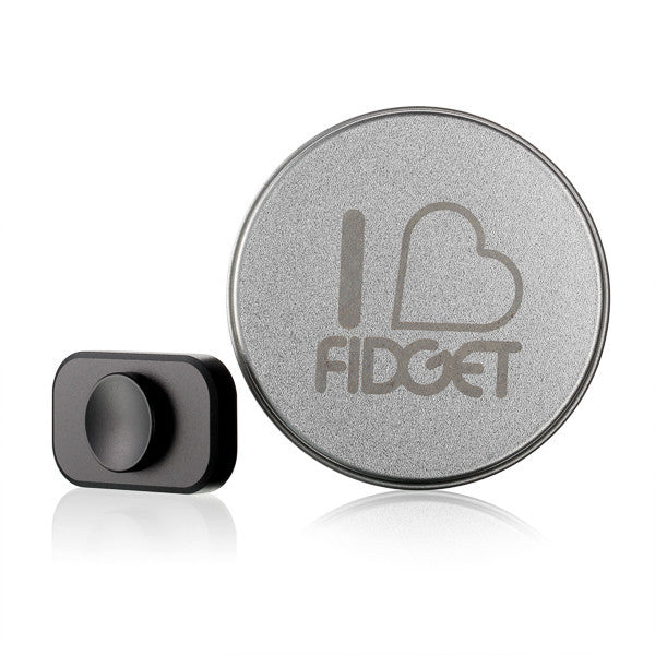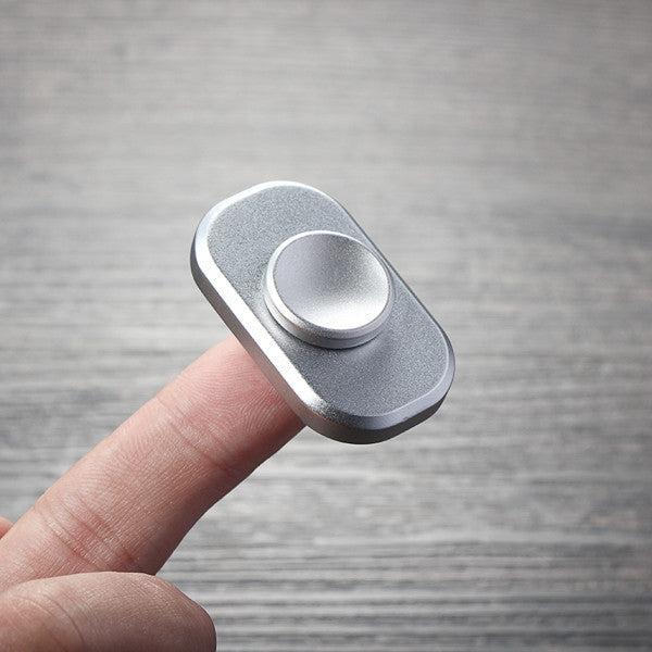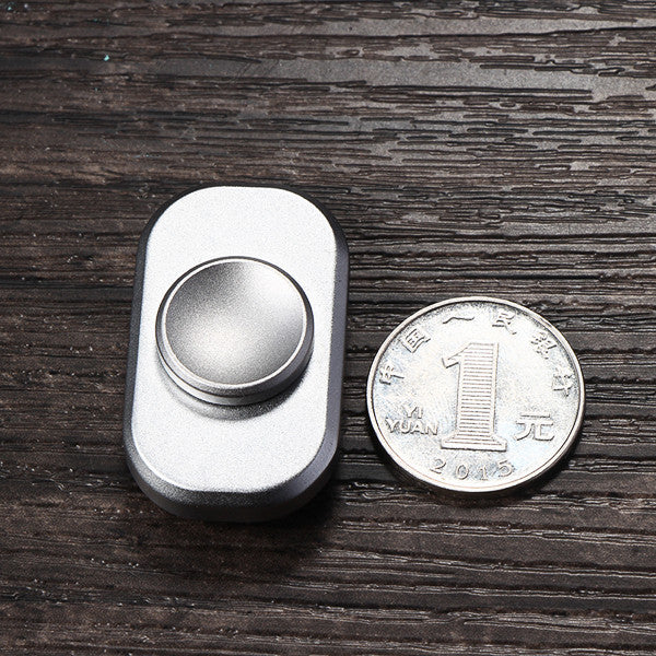 Perfect for discrete fidgeting! Roughly 1.6 inches in length and 1 inch in width. Take this spinner anywhere! Low profile, extremely well made, low noise level.